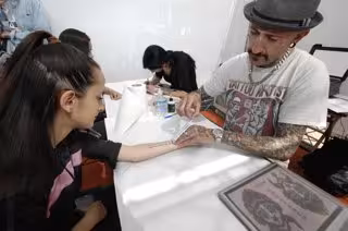 Uno de los tatuadores, Stefano, ha explicado que se utiliza la técnica del 'stencil' y que el tatuaje aguanta entre dos y tres días, y ha recordado que el tatuaje permite expresar.