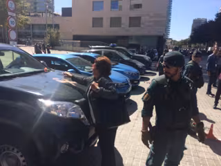Bassa ha hablado de "resistencia sin violencia", y, después de acceder al departamento, ha vuelto a salir para depositar un clavel encima de un furgón policial.