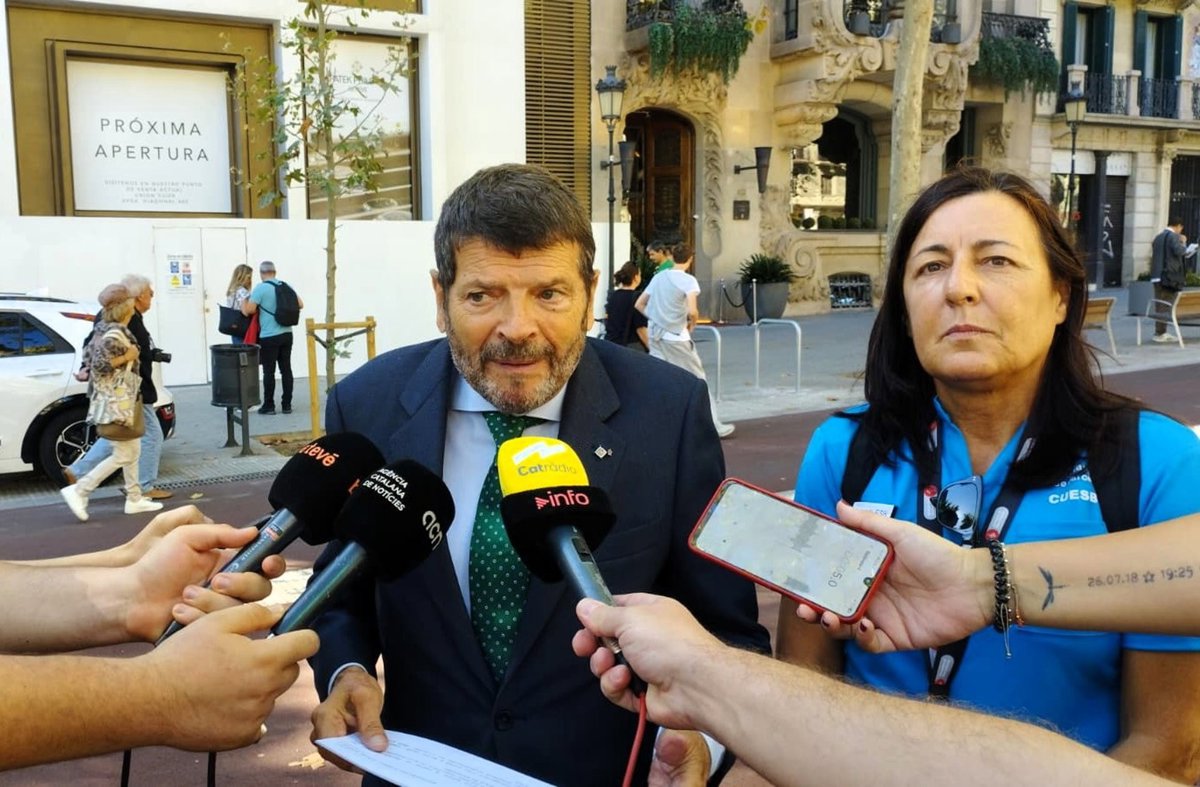 El tercer teniente de alcalde del Ayuntamiento de Barcelona, Albert Batlle, atiende a los medios después del desalojo del parque Joan Miró. - EUROPA PRESS