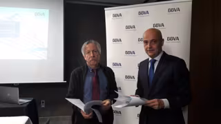 El director del estudio y catedrático emérito de Economía Aplicada de la Universitat Autònoma de Barcelona (UAB), Josep Oliver, acompañado por el director de zona de la entidad, Víctor Blasco, ha presentado este martes el estudio, que refleja que pesar de la mejora del 2017, los efectos de la crisis todavía se dejan notar sobre las comarcas de Lleida, a diferencia los datos globales de Catalunya, ha informado el BBVA en un comunicado.