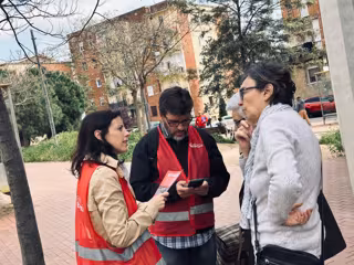 La concejal de los Comuns Carol Recio hablando con vecinos de la Trinitat - BCOMÚ