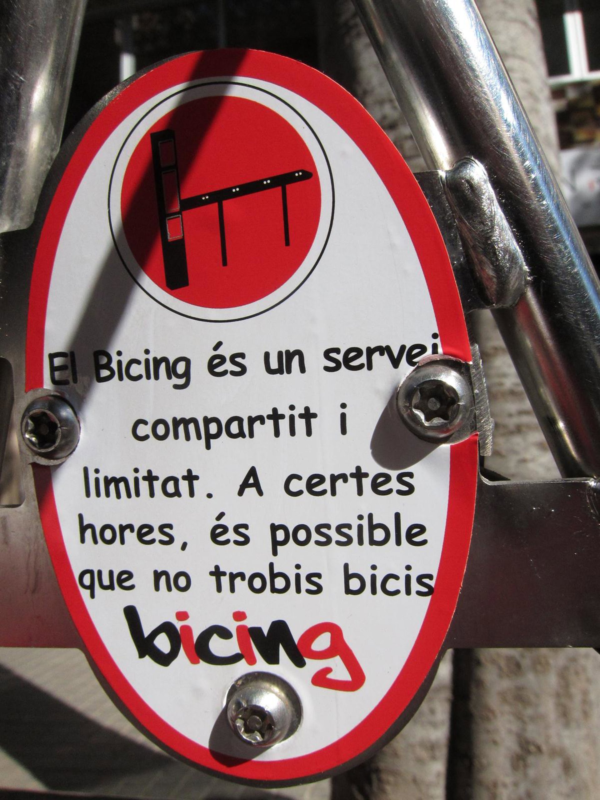 El servicio público de bicicletas de Barcelona, el Bicing, ha comenzado a incorporar en su flota de bicicletas adhesivos con mensajes que incorporan consejos y recomendaciones para concienciar a los usuarios sobre el bueno uso de este transporte y evitar las prácticas incívicas.