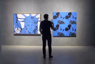 En la muestra, se pueden ver un 'Mickey Mouse' de la serie de los mitos, así como la 'Estatua de la Libertad' de Andy Warhol --que toma el mismo color azul del tabaco francés de la época--, y se pueden ver obras oníricas de Mark Tansey, de Jörg Immendorff.