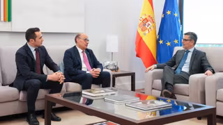El ministro de Presidencia, Justicia y Relaciones con las Cortes, Félix Bolaños, recibió este jueves en Madrid al presidente de la patronal Cecot, Xavier Panés, para abordar los retos del tejido empresarial catalán.