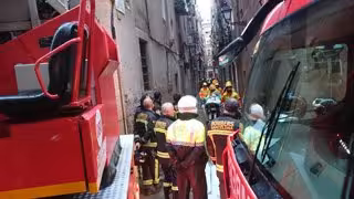 Los Bomberos de Barcelona han acompañado esta miércoles por la mañana a los vecinos desalojados el pasado martes tras la explosión en el cuarto primera del número 12 de la calle Bou de Sant Pere, para que pudieran recoger sus enseres.
