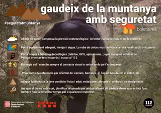 Lo han advertido al presentar la campaña de seguridad para 'boletaires' --recolectores de setas-- en el Parque de Bomberos de Berga (Barcelona) el director de los Servicios de Interior en la Catalunya Central, Eduard Freicades; el jefe de región de emergencias centro de Bomberos, Francesc Boya, y el jefe del parque de la localidad, Vicenç Vegas.