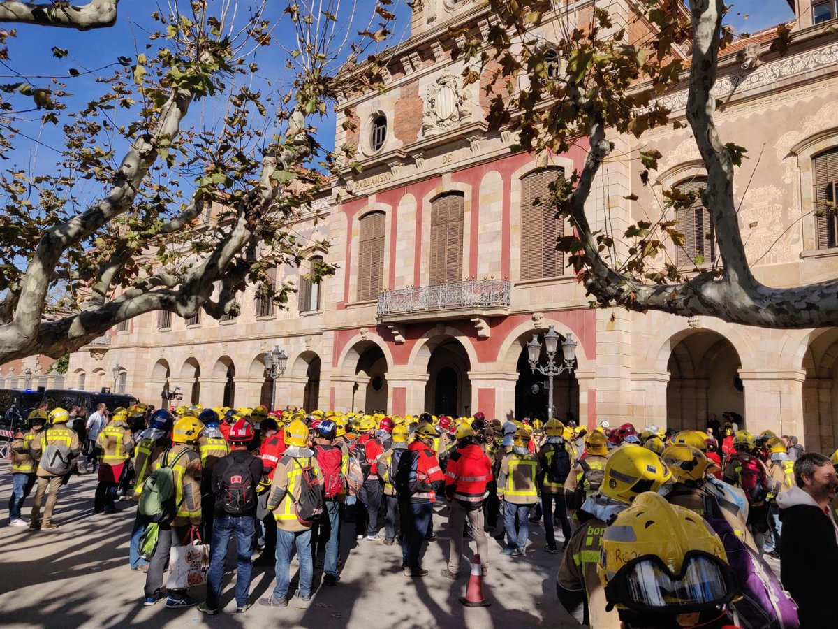 Tras negarse a declarar y quedar su detención sin efecto, los bomberos que se manifestaban han finalizado su concentración ante la Cámara catalana, convocada para protestar por sus condiciones laborales.