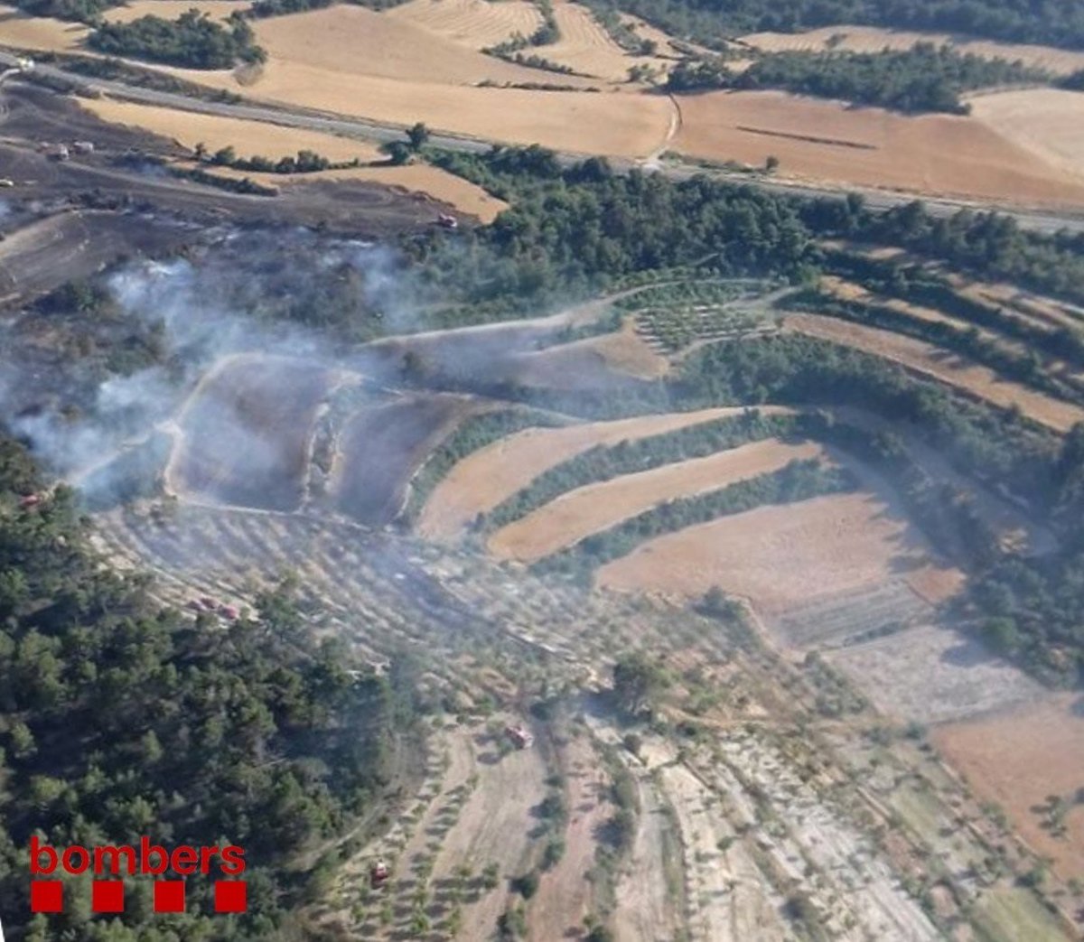 Los Bomberos de la Generalitat trabajan la tarde de este martes en un incendio agrícola y forestal en Ciutadilla (Lleida), que afecta a una superficie de 5,15 hectáreas.