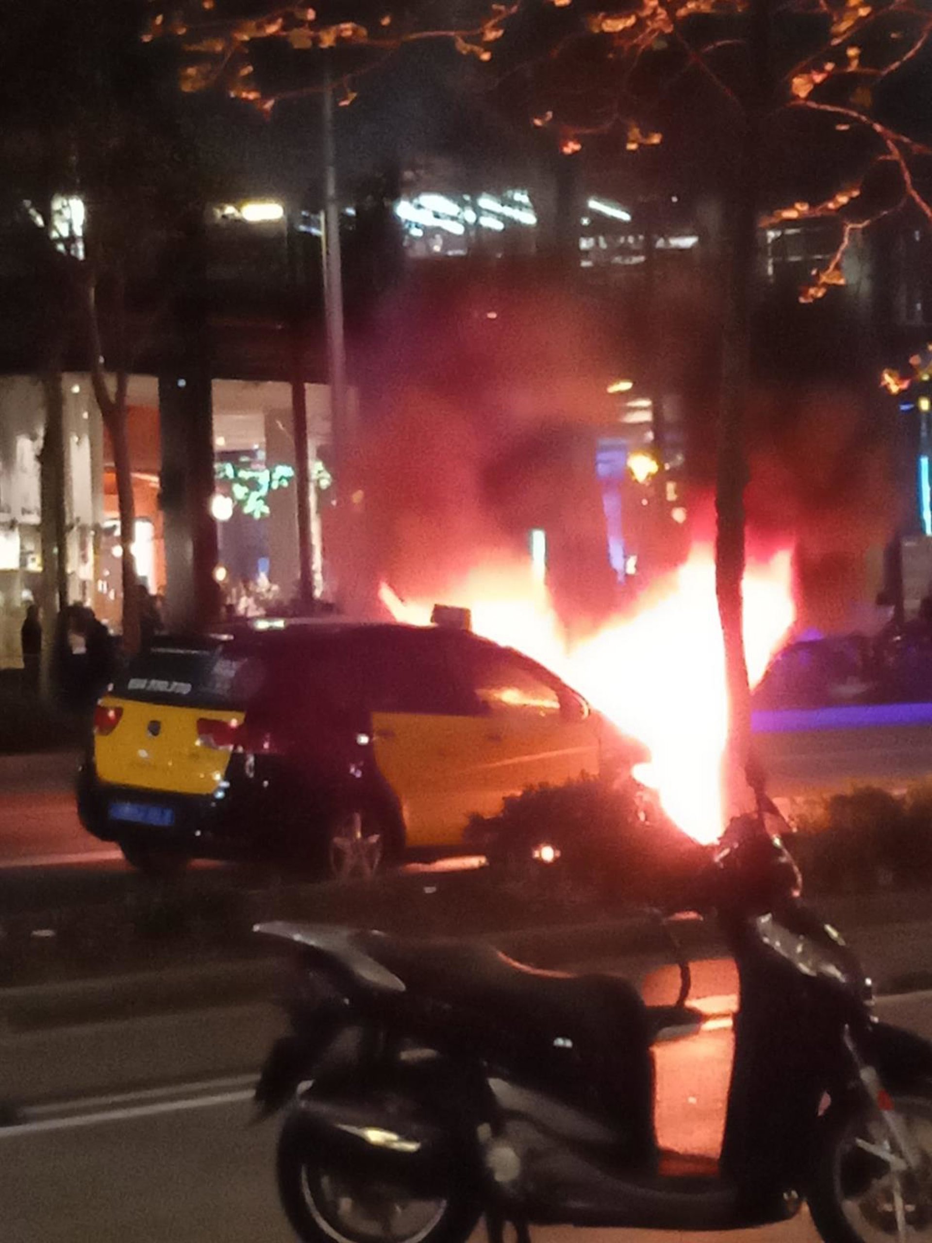 Imagen del taxi incendiado en la avenida Diagonal - EUROPA PRESS