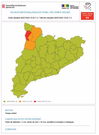 Aviso de tiempo violento en comarcas de Lleida - METEOCAT