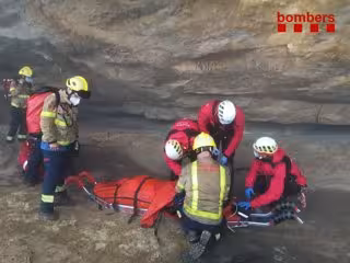 Ocho dotaciones de los Bombers de la Generalitat han participado en el rescate de un ciclista que se ha precipitado este sábado por la mañana por un desnivel de 20 metros en Sant Quirze Safaja (Barcelona), y que actualmente se encuentra en estado grave de salud.