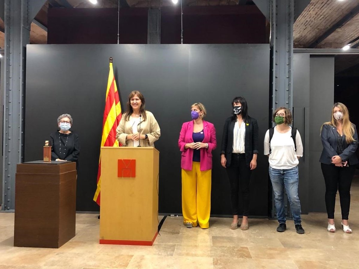 La presidenta del Parlament, Laura Borrs, la directora del Museu d'Histria, Margarida Sala, la vicepresidenta primera del Parlament, Alba Vergés, la secretaria 2a de la Mesa, Aurora Madaula, y la diputada de la CUP Eullia Reguant en el acto. - EUROPA PRESS