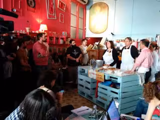 Aprovechando el taller de cocina en el restaurante Semproniana, ERC ha presentado sus propuestas en forma de menú, en el que sus proyectos aparecen como entrante, primer plato, segundo plato y postre, con un precio "para todos los bolsillos".