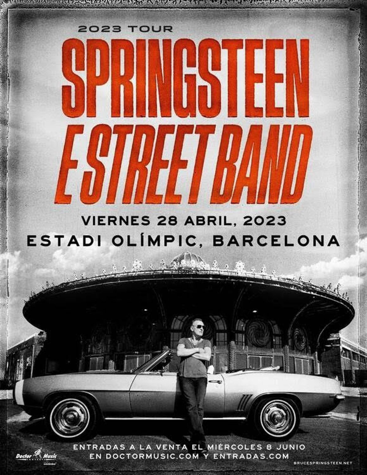 Cartel promocional del concierto del cantante estadounidense Bruce Springsteen & The E Street Band, que han anunciado una nueva gira europea con inicio en Barcelona el 28 de abril de 2023 - DOCTOR MUSIC