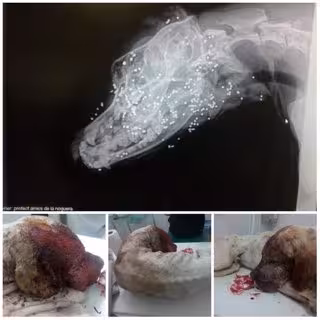 La Associació d'Amics dels Animals de la Noguera pidió vía Facebook el 20 de noviembre aportaciones para pagar la operación, y ha hecho público a través de la red que al perro ya le han extirpado el ojo con éxito y le han sacado algunos de los perdigones.