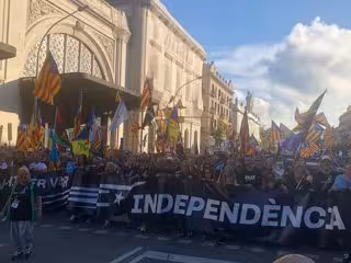 La manifestación, bajo el lema 'Tornem-hi per vncer: Independncia' (Volvamos para vencer: Independencia), ha empezado en la avenida Parallel a las 17.14 --hora que evoca el año 1714-- y ha estado marcada por la ausencia del presidente de la Generalitat, Pere Aragons, y de los consellers de ERC en el Govern.