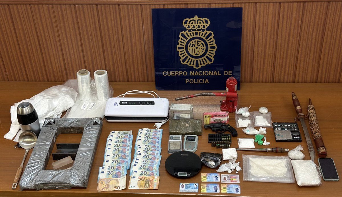 Ante esta actuación, solicitaron la entrada y el registro de los domicilios de los investigados y encontraron 811 gramos de cocaína en formato de roca y polvo, además de numerosas dosis en papelinas preparadas para su venta, un revólver, cartuchos de munición, una catana y una daga, entre otros.