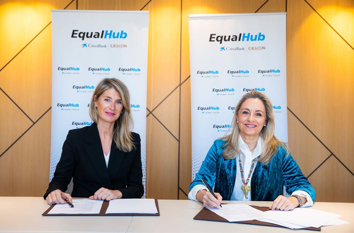 La directora de Cultura y Selección de CaixaBank, Ana Quirós, y la presidenta de Eje&Con, Cristina Sancho, han firmado un acuerdo para lanzar el proyecto EqualHub, que promueve la diversidad de género y generacional en el ámbito empresarial y la sociedad.
