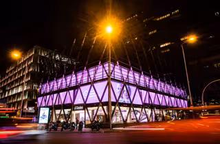 El All-in-one de CaixaBank en Madrid con luces rosas. - MAXIMO GARCIA DE LA PAZ - CAIXABANK