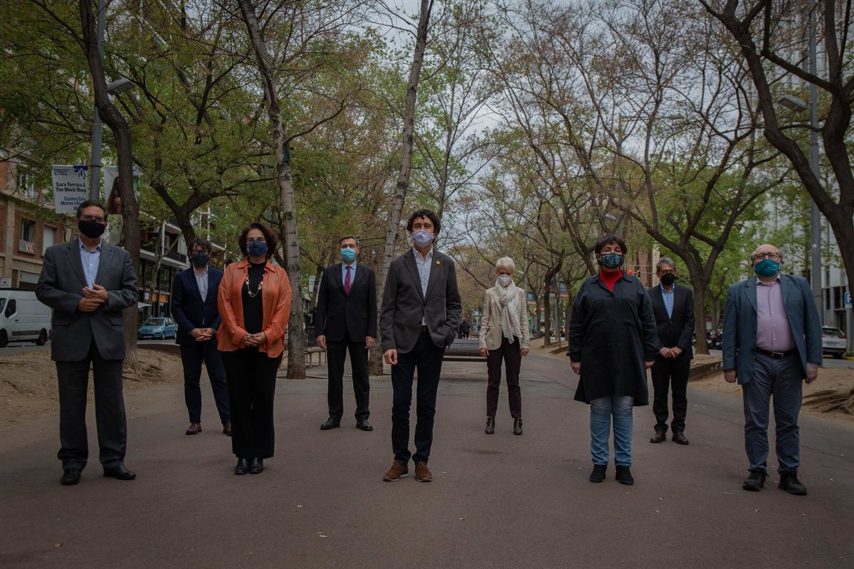 Foto de familia, de (i-d), en la primera fila, el director del área de movilidad y transporte de la AMB (rea Metropolitana de Barcelona), Joan Maria Vigas; la presidenta de la AMTU (Associació de municipis per la Mobilitat i el Transport Urb), Aurora - David Zorrakino - Europa Press