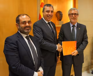 El presidente de la Cámara de Comercio de Tarragona, Albert Abelló, y el alcalde, Josep Fèlix Ballesteros, han firmado este miércoles el convenio de colaboración para impulsar el Tarragona Welcome Pack, que busca promocionar la emprendeduría y captar negocios en la ciudad, ofreciendo los servicios necesarios a los empresarios para iniciar su actividad.