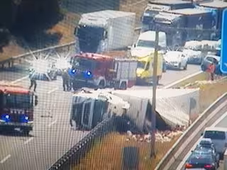 La autopista AP-7 registra retenciones de 2,5 kilómetros en Vilafranca del Peneds (Barcelona) en sentido Barcelona después de que un camión haya volcado - TRNSIT