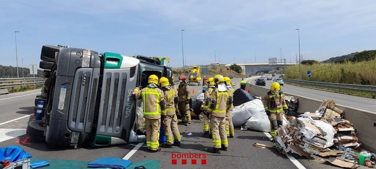 Imagen de un camión volcado en la C-31 en Palamós - BOMBERS DE LA GENERALITAT