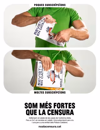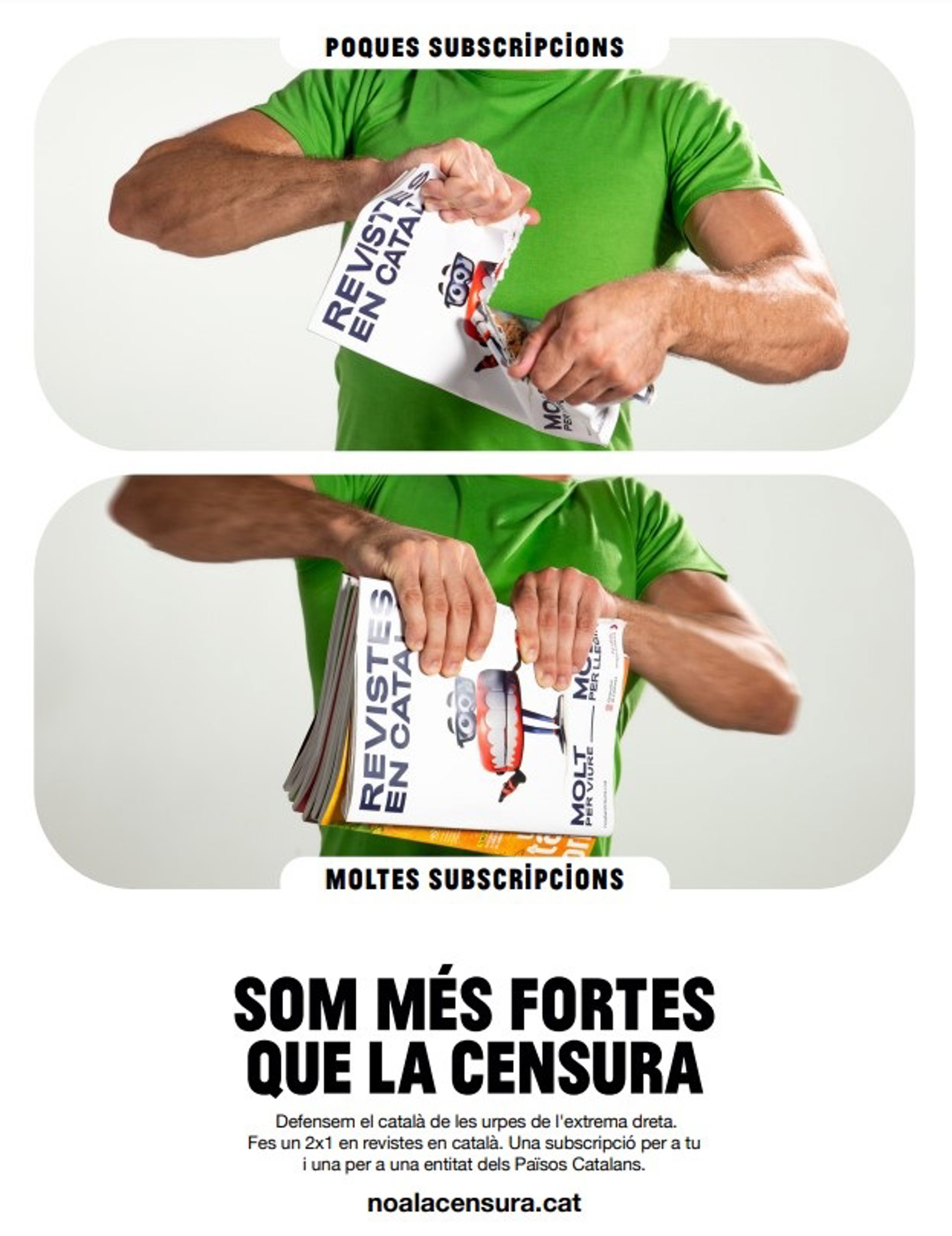 Cartel de la campaña 'Som més fortes que la censura' impulsada por el Govern de la Generalitat y la Associació de Publicacions Peridiques en Catal (APPEC) para incentivar las suscripciones a revistas en catalán - GOVERN