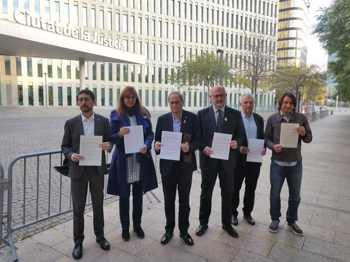 Torra acude a Ciutat de la Justicia para presentar su autoinculpación junto con D.Calvet, L.Borrs, E.Pujol, J.M. Forné y Francesc de Dalmases. - EUROPA PRESS