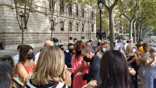 El Secretario para la Administración de Justicia de la Generalitat, Eusebi Campdepadrós, ha llegado a su citación en el Tribunal Superior de Justicia de Catalunya (TSJC) acompañado de una cincuentena de personas para declarar como investigado por presunta desobediencia cuando era el secretario primero de la Mesa del Parlament.