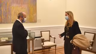 El ministro de Justicia, Juan Carlos Campo, reunido con la decana del Colegio de la Abogacía de Barcelona (Icab) y presidenta del Consejo de la Abogacía Catalana (Cicac), Maria Eugnia Gay. En Madrid, el 18 de diciembre de 2020. - MINISTERIO DE JUSTICIA