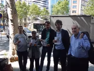 El candidato del PSC a las europeas, Javi López; el número dos de la candidatura ERC-Necat, Ernest Maragall, y los candidatos de ICV-EUiA, Ernest Urtasun y Núria Lozano, han prometido que no colaborarán con la extrema derecha en el Parlamento Europeo, en el acto celebrado este jueves 'No votes a los herederos de Hitler y Franco' impulsado por la Red Unitaria contra el Fascismo y el Racismo.
