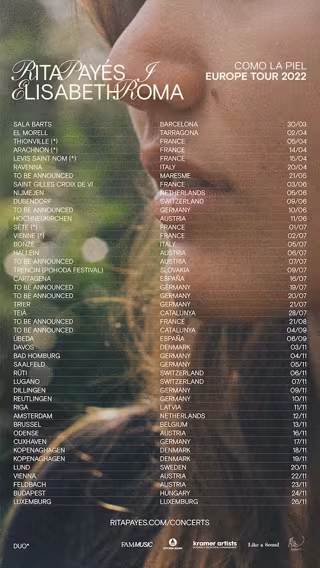 La cantante y trombonista Rita Payés ha anunciado una gira europea en 2022 que empezará con un concierto en la Sala Barts de Barcelona el 30 de marzo, dentro del programa del Festival Crulla Primavera, y en El Morell (Tarragona) el 2 de abril.