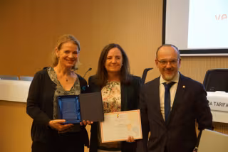 El conseller de Derechos Sociales de la Generalitat, Carlos Campuzano, y la presidenta de la entidad, Emilia Tarifa, han entregado el galardón a la empleada de Caprabo, Esther Zapater, quien ha definido a las familias como las "principales aliadas" de la compañía.