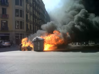 Hasta quemar contenedores, la agresividad ha ido creciendo: primero han encendido una hoguera ante la Bolsa de Barcelona, otra ante una sucursal del BBVA, han obligado a cerrar las tiendas con actitudes amenazadoras, han seguido con pintadas --sobre todo ante bancos, incluida la sede del Sabadell--, han lanzado objetos a los Bomberos que han sofocaban uno de sus fuegos, incluida una barra de hierro, y han destrozado muchos escaparates.