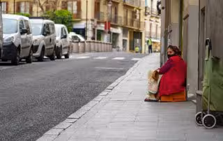 Una indigente el la puerta de un supermercado durante el tercer día laborable desde que se decretó el estado de alarma a consecuencia del coronavirus, en Sevilla (España), a 18 de marzo de 2020 (archivo) - Eduardo Briones - Europa Press