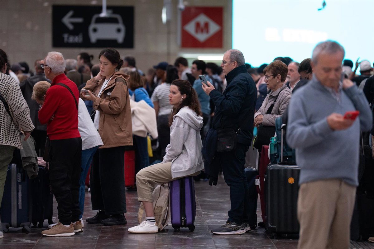 Varias personas esperan en la estación de Sants tras el apagón eléctrico. - David Zorrakino - Europa Press