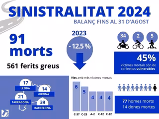 La siniestralidad se ha reducido en la mayoría de las demarcaciones respecto al 2023: Barcelona con 39 víctimas, Tarragona con 21 y Girona con 14.
