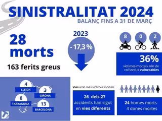 Las carreteras catalanas han registrado 28 muertes en 27 accidentes de tráfico el primer trimestre de 2024, según ha informado el Servei Català de Trànsit (SCT) este lunes en un comunicado.