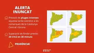Protecció Civil de la Generalitat ha activado este sábado la alerta del plan Inuncat ante la previsión de lluvias que pueden ser intensas a partir del mediodía y hasta la noche en muchas comarcas catalanas, especialmente en las centrales y las de la provincia de Girona.