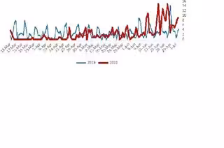Gráfico comparativo entre las actuaciones de Bombers durante el 2019 y 2020 - BOMBERS DE CATALUNYA