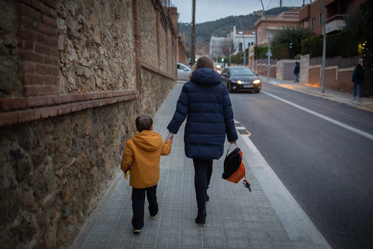 Archivo - Una mujer lleva de la mano a un niño a clase - David Zorrakino - Europa Press - Archivo