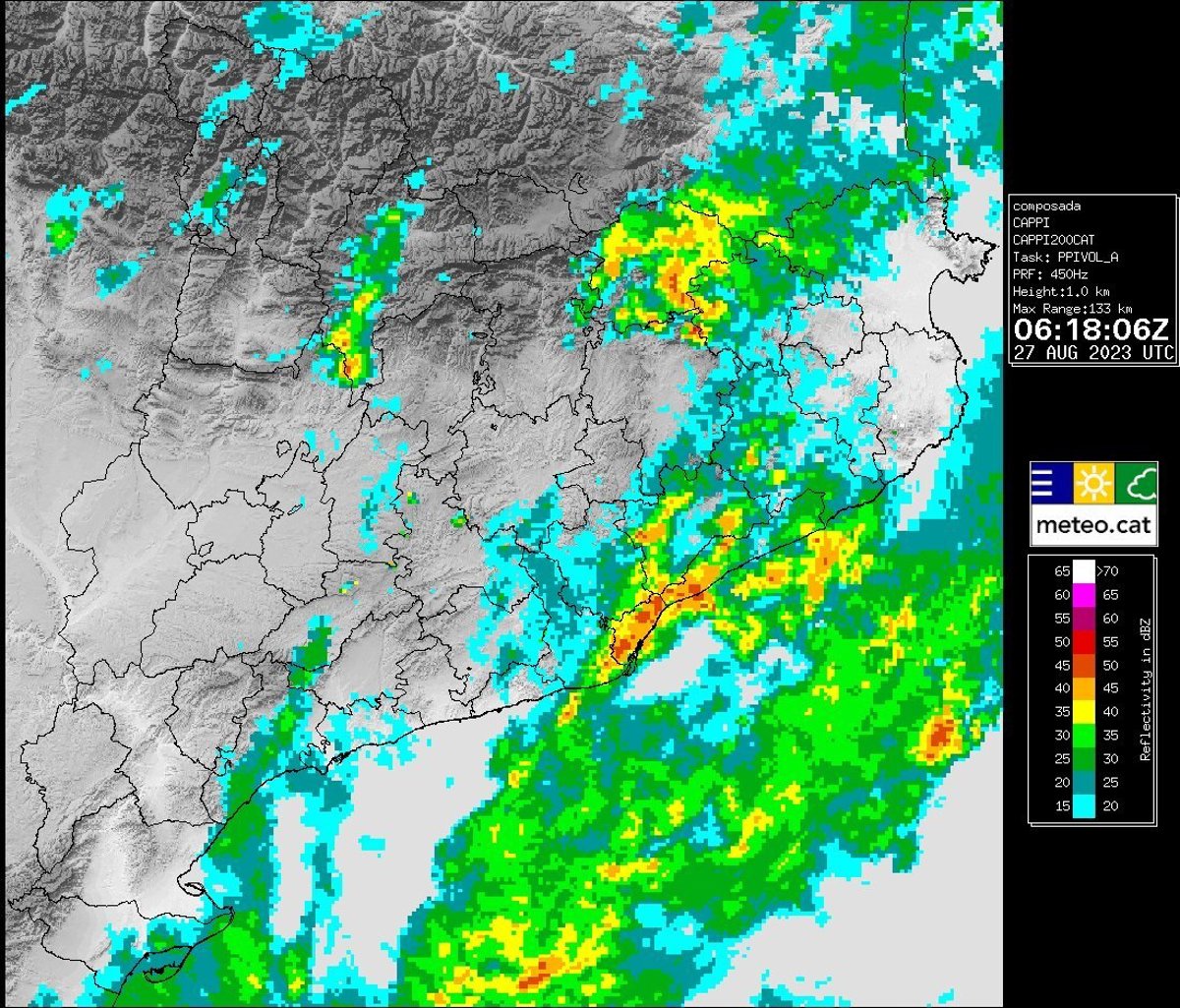 En otros puntos de Catalunya se han acumulado 34,9 milímetros de agua en 30 minutos en el Santuari de Queralt, en Berga (Barcelona), y en Olot (Girona) se han registrado 21,7 milímetros en media hora.