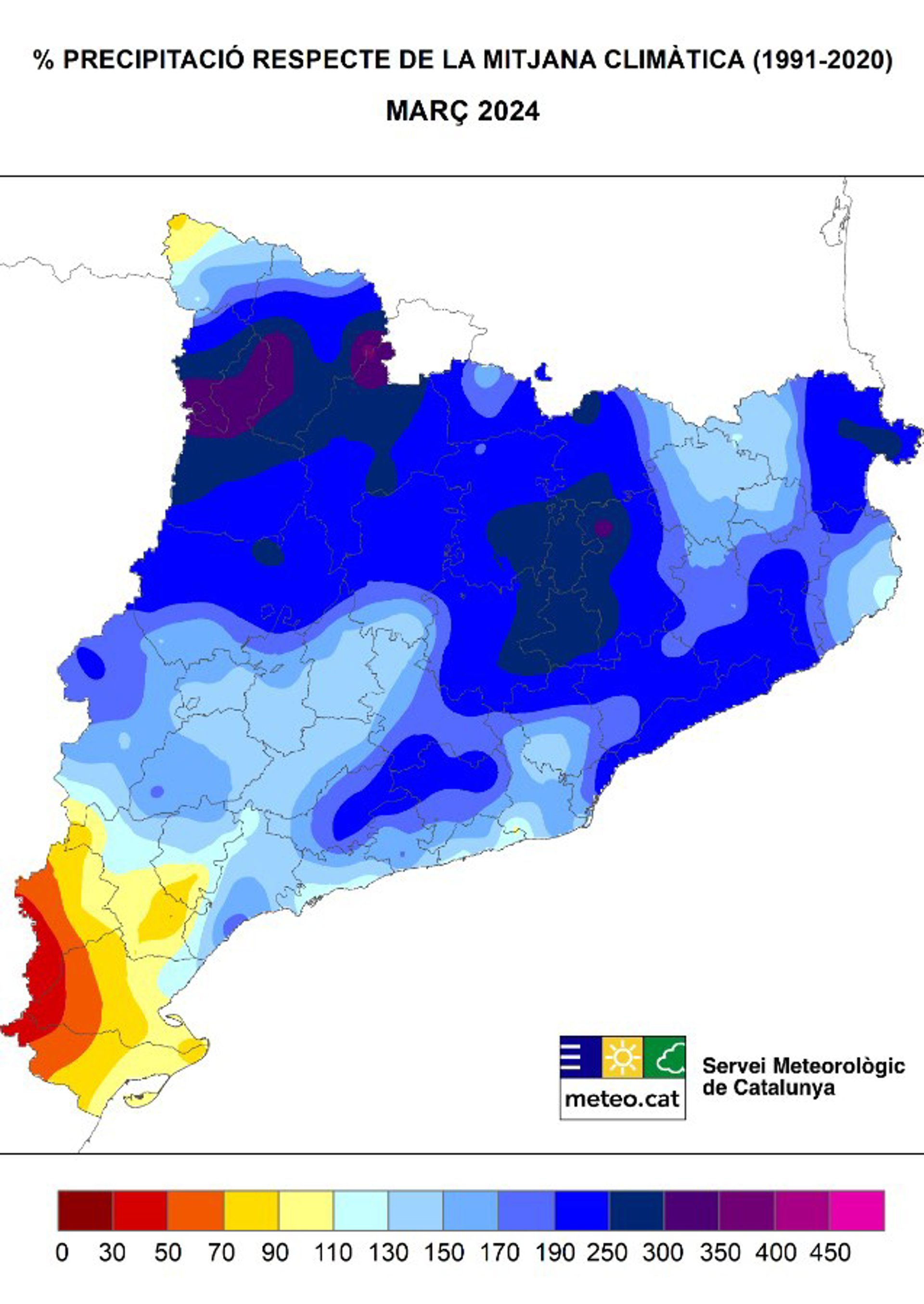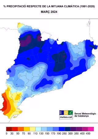 Precipitaciones registradas en marzo de 2024 en Catalunya - METEOCAT