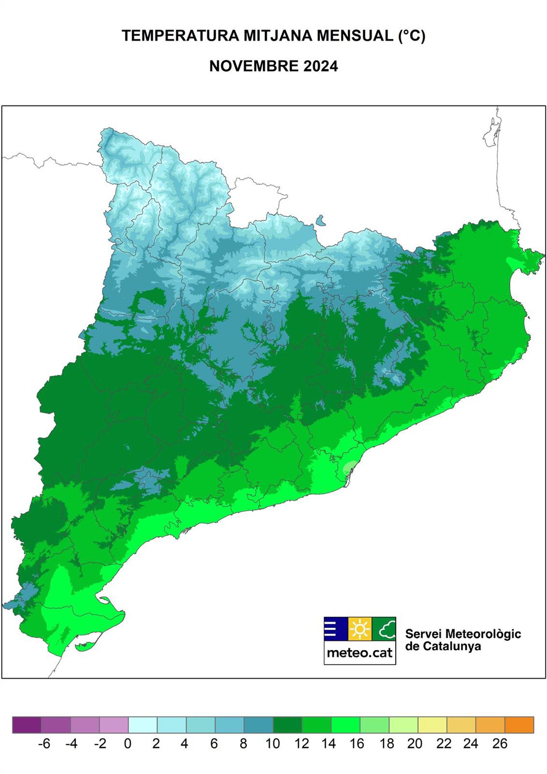 Temperatura media mensual en noviembre de 2024 - METEOCAT