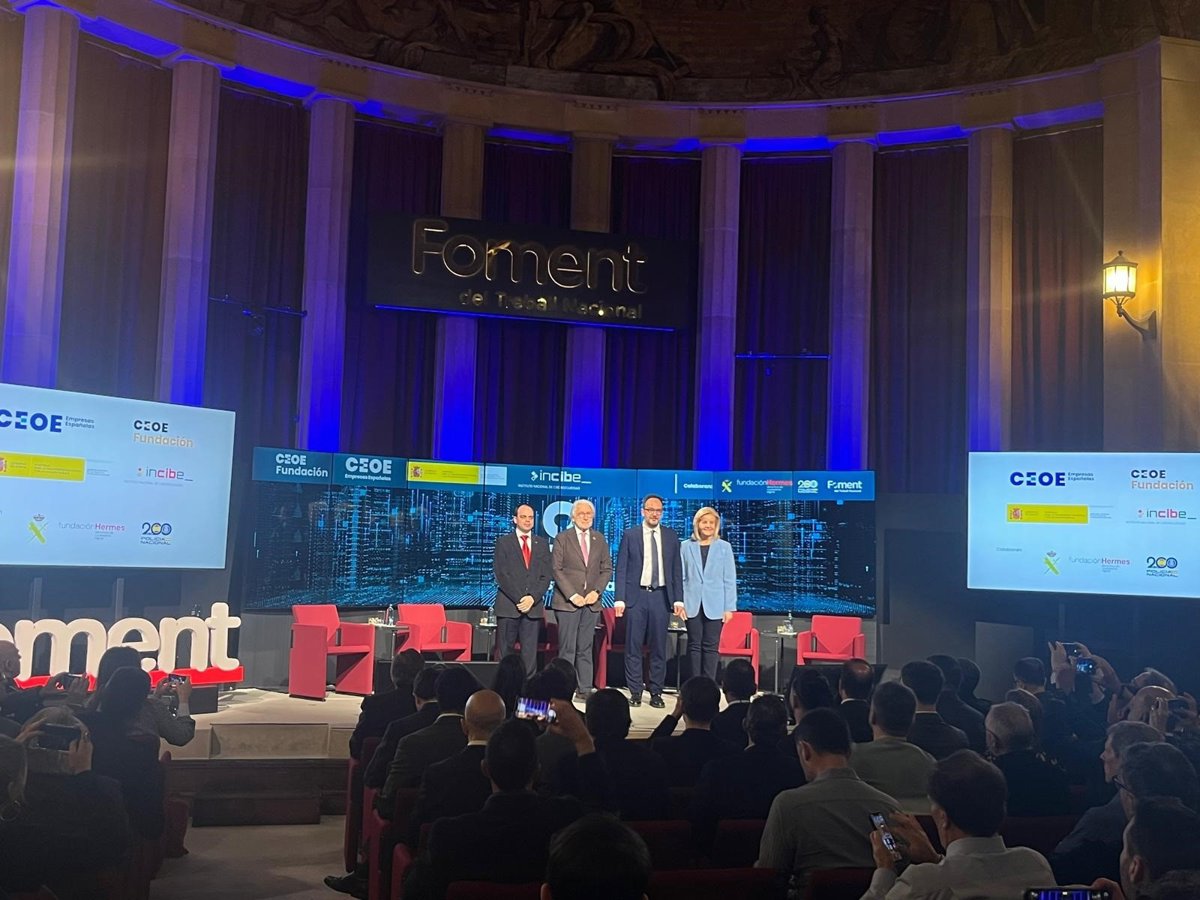 En el acto también estaban presentes el secretario de Telecomunicaciones y Transformación Digital de la Generalitat, Albert Tort, el presidente de Foment del Treball, Josep Sánchez Llibre, y la presidenta de la Fundación Ceoe, Fátima Báñez.