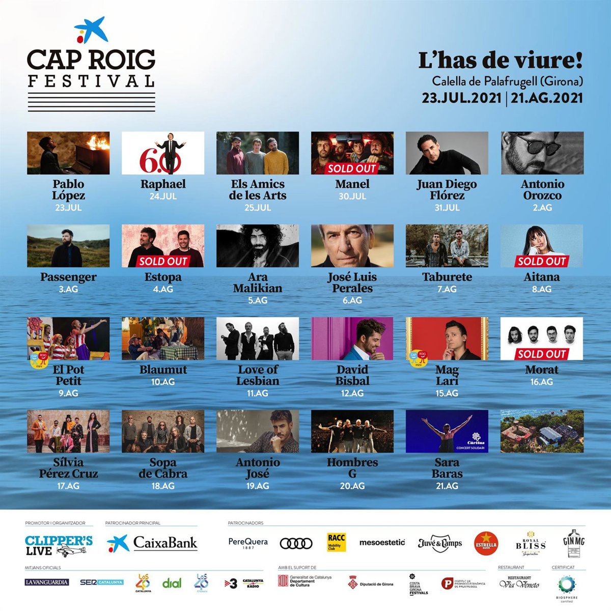 El festival, que el pasado año se aplazó por la pandemia, vuelve este año con artistas como Passenger, Pablo López, Raphael, Els Amics de les Arts, Manel, Juan Diego Flórez, Antonio Orozco, Ara Malikian, Love of Lesbian, Sílvia Pérez Cruz y Sara Baras, entre otros, y contará con todas las medidas sanitarias y de prevención.