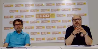 El secretario de políticas públicas de CC.OO. De Catalunya, Manel Fages, y el coordinador del área pública, Manuel Pulido, en una rueda de prensa telemática - CC.OO.