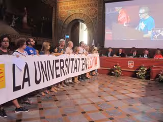 Después de que el rector de la UB, Dídac Ramírez, les diera la palabra al inicio del acto, el comité de empresa y junta de personal de administración y servicios de la UB ha criticado la "invasión de competencias" del Govern a las universidades y el incremento de las tasas universitarias en los últimos años.