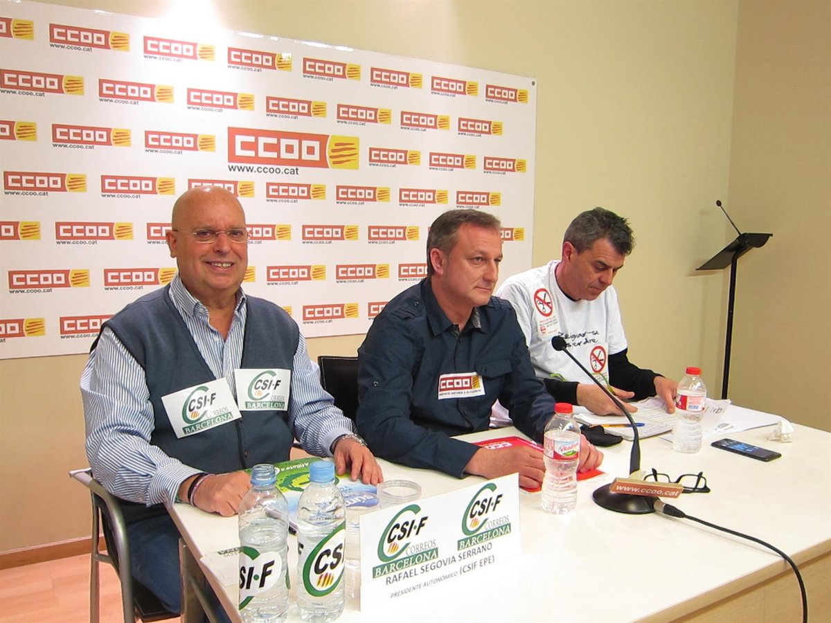 El secretario provincial de CC.OO. de Correos en Barcelona, Alberto Pérez; el secretario de UGT Catalunya de Correos, Rubén Valdés, y el presidente de CSI-F Catalunya-Correos, Rafa Segovia, han alertado del "abandono" de este servicio público y de la afectación tanto a sus trabajadores como a la ciudadanía.
